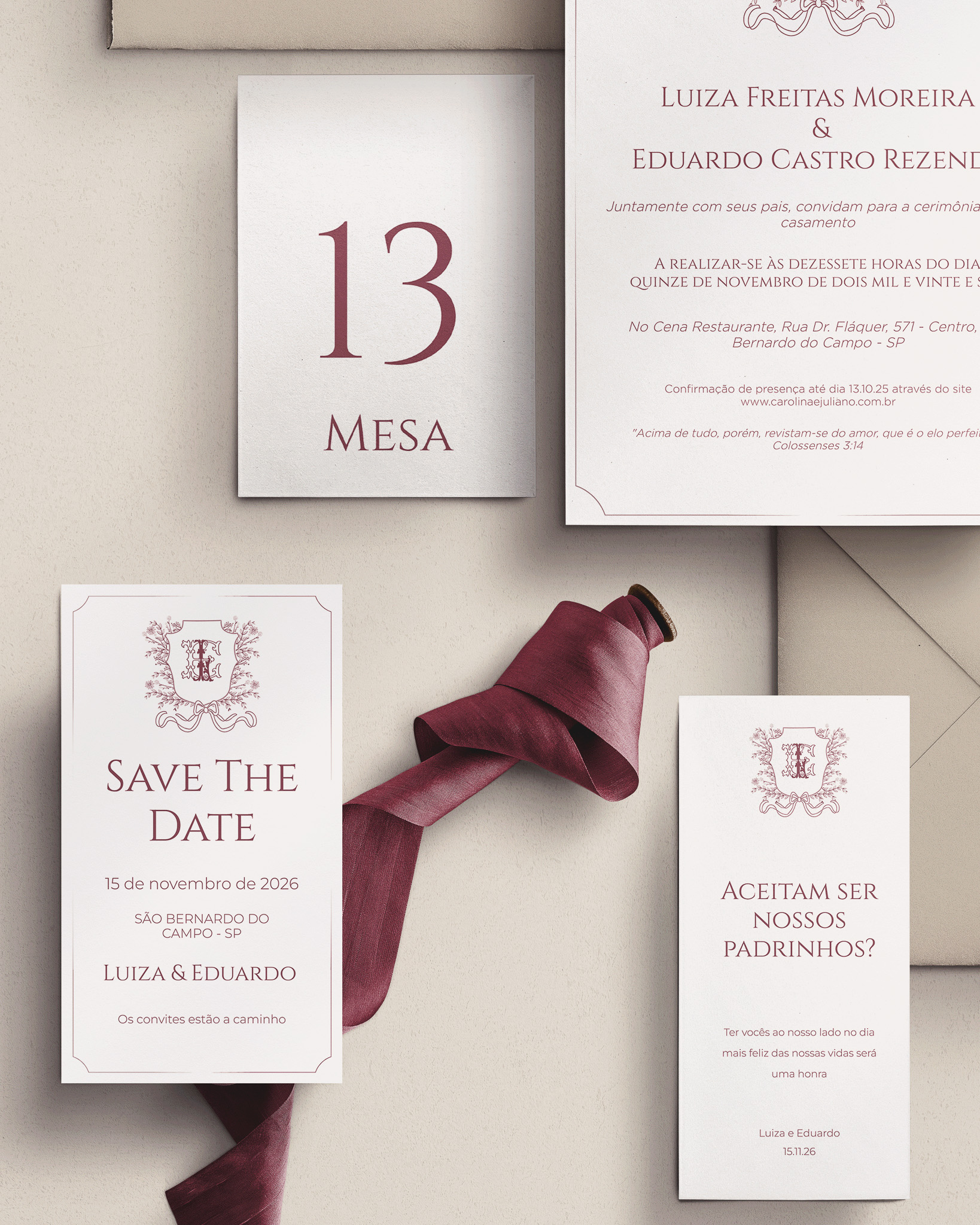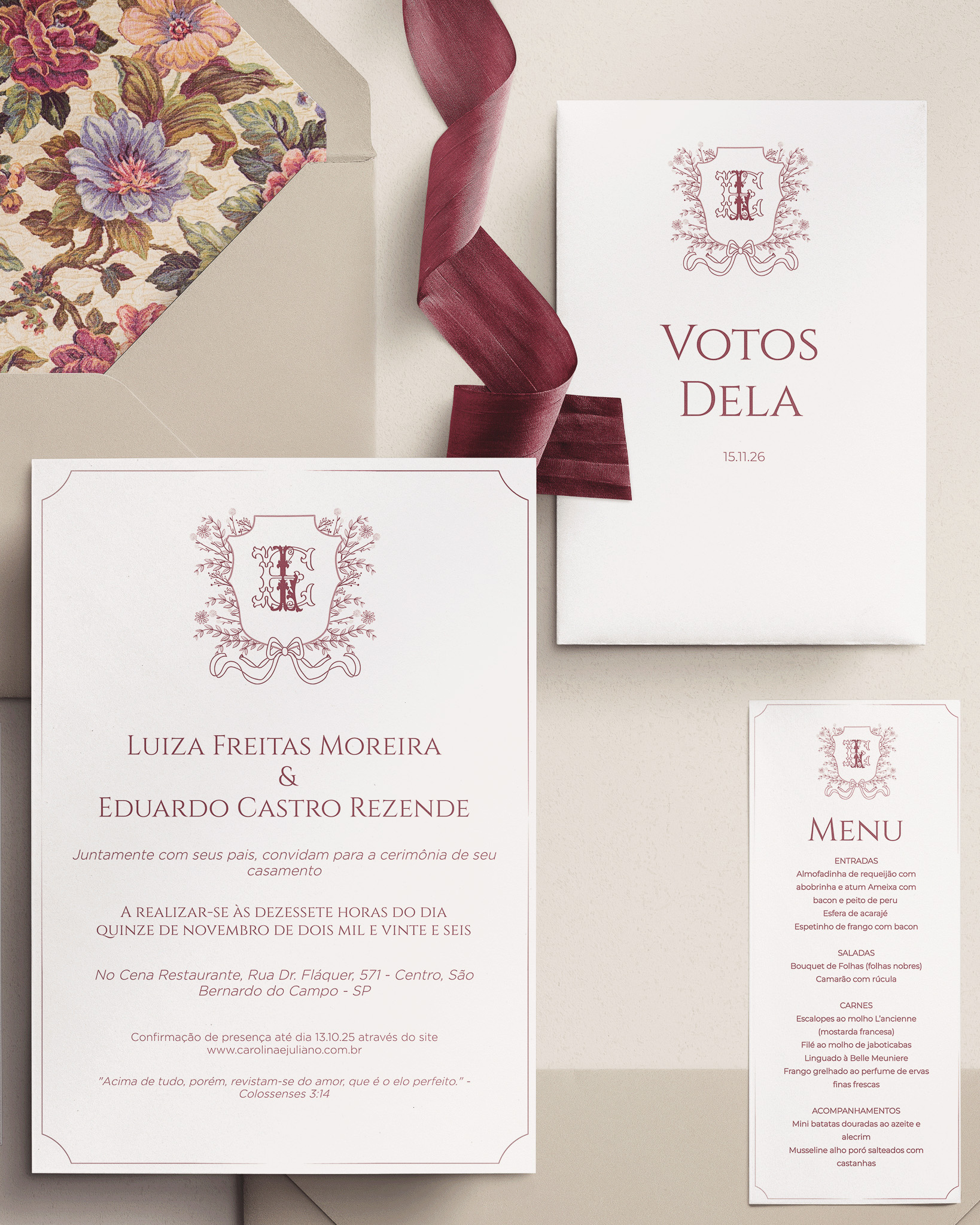 Kit Convite de Casamento – Template Fine Art Brasão Floral com Laço
