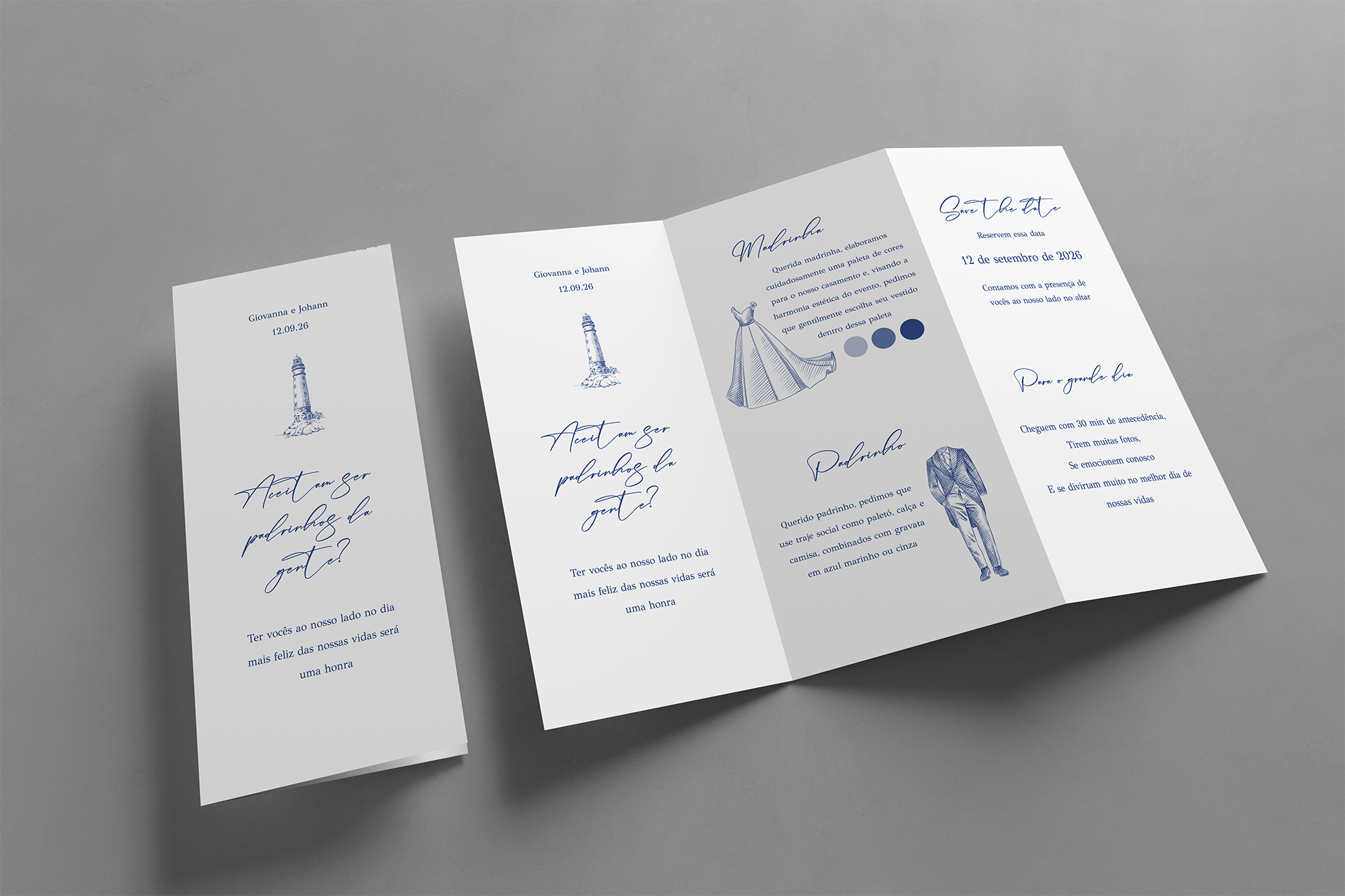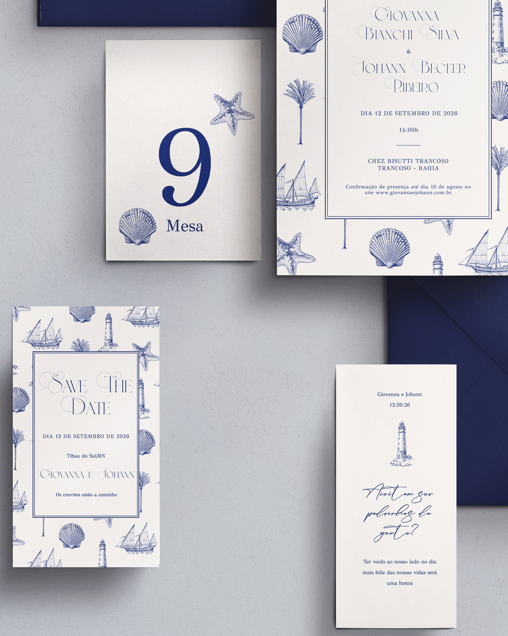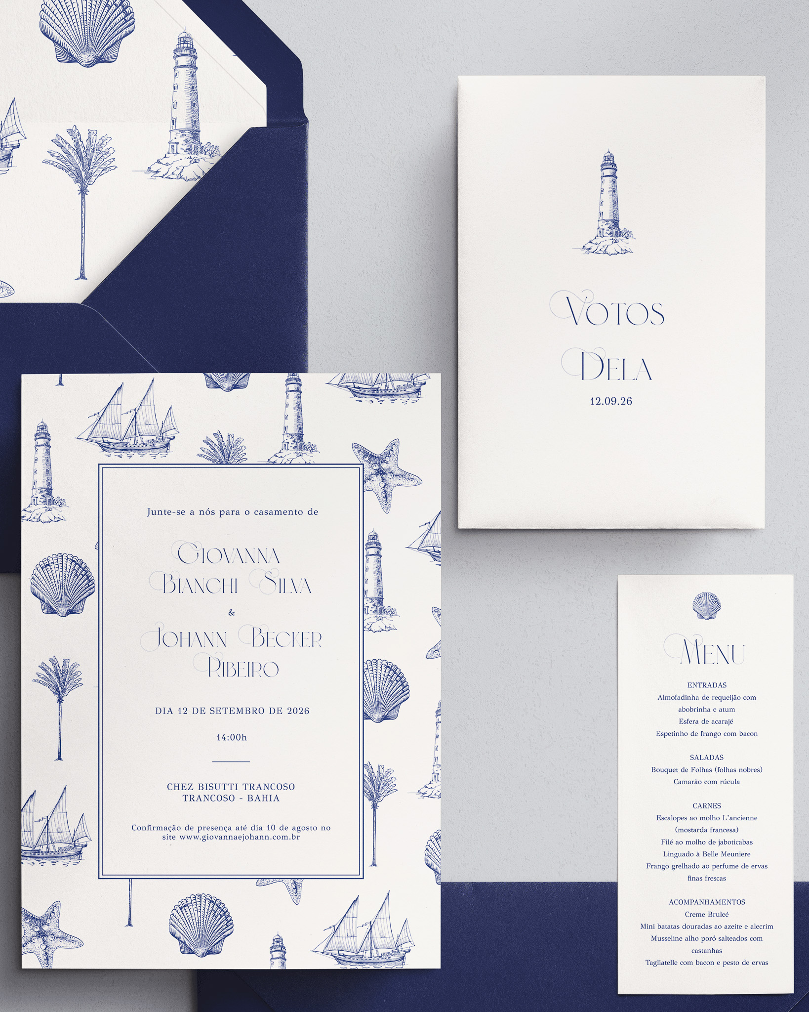 Kit Convite de Casamento – Template Fine Art Vintage Padrão Marinho