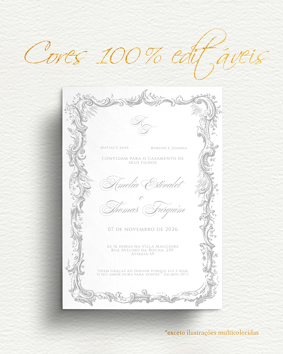 Transforme o seu grande dia com um convite que é tão especial quanto o momento! Nossos templates foram criados para noivas que buscam designs de alto padrão, com a economia e praticidade