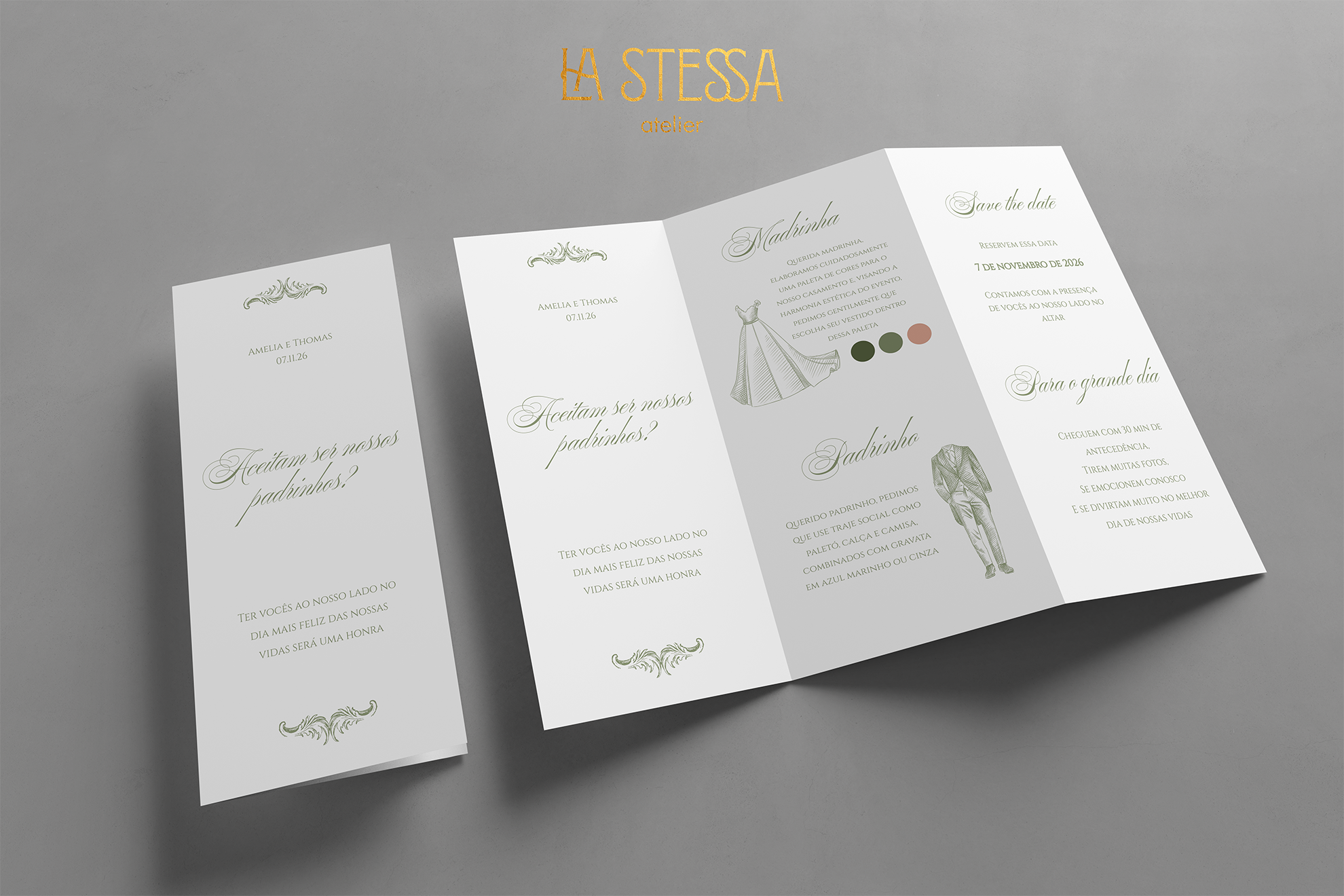 • Tag de convite (com traje e lista de presentes)